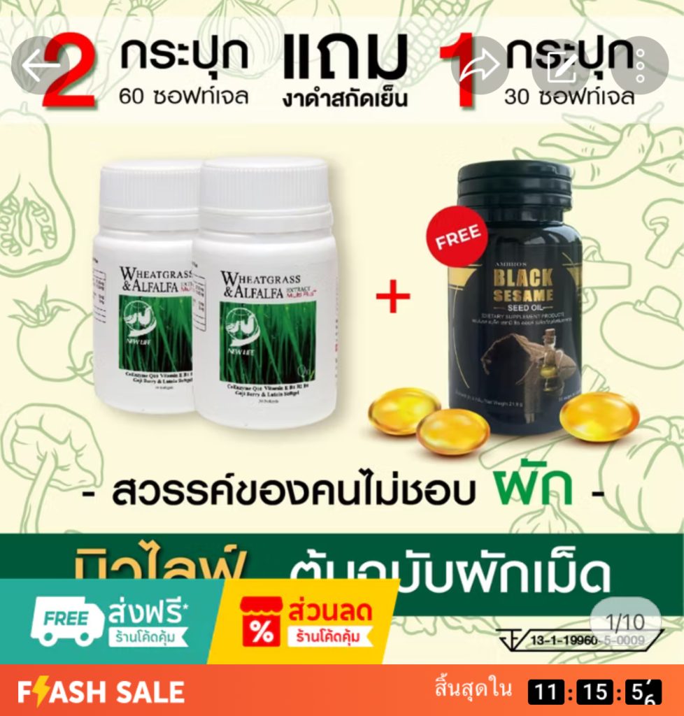 " 1 เม็ดเทียบเท่ากับคุณค่าที่ได้จากการทานผักสองกิโล " อย.13-1-19960-5-0009